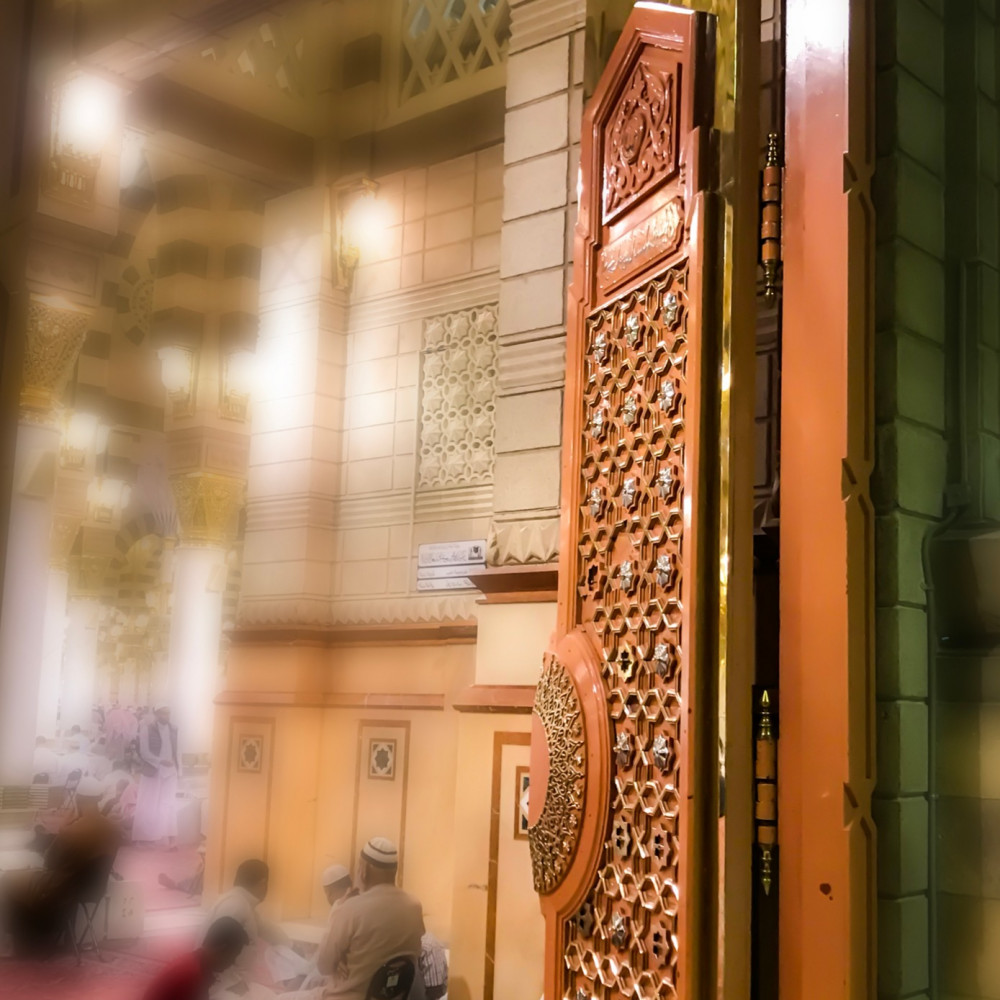 مجسم مصنوع من الخشب والنحاس والرخام عال الجودة ومستوحى من باب عمر بن الخطاب رضي الله عنه بالمسجد النبوي الشريف.