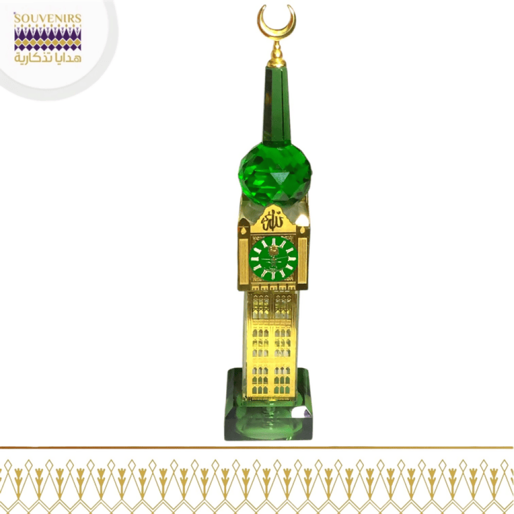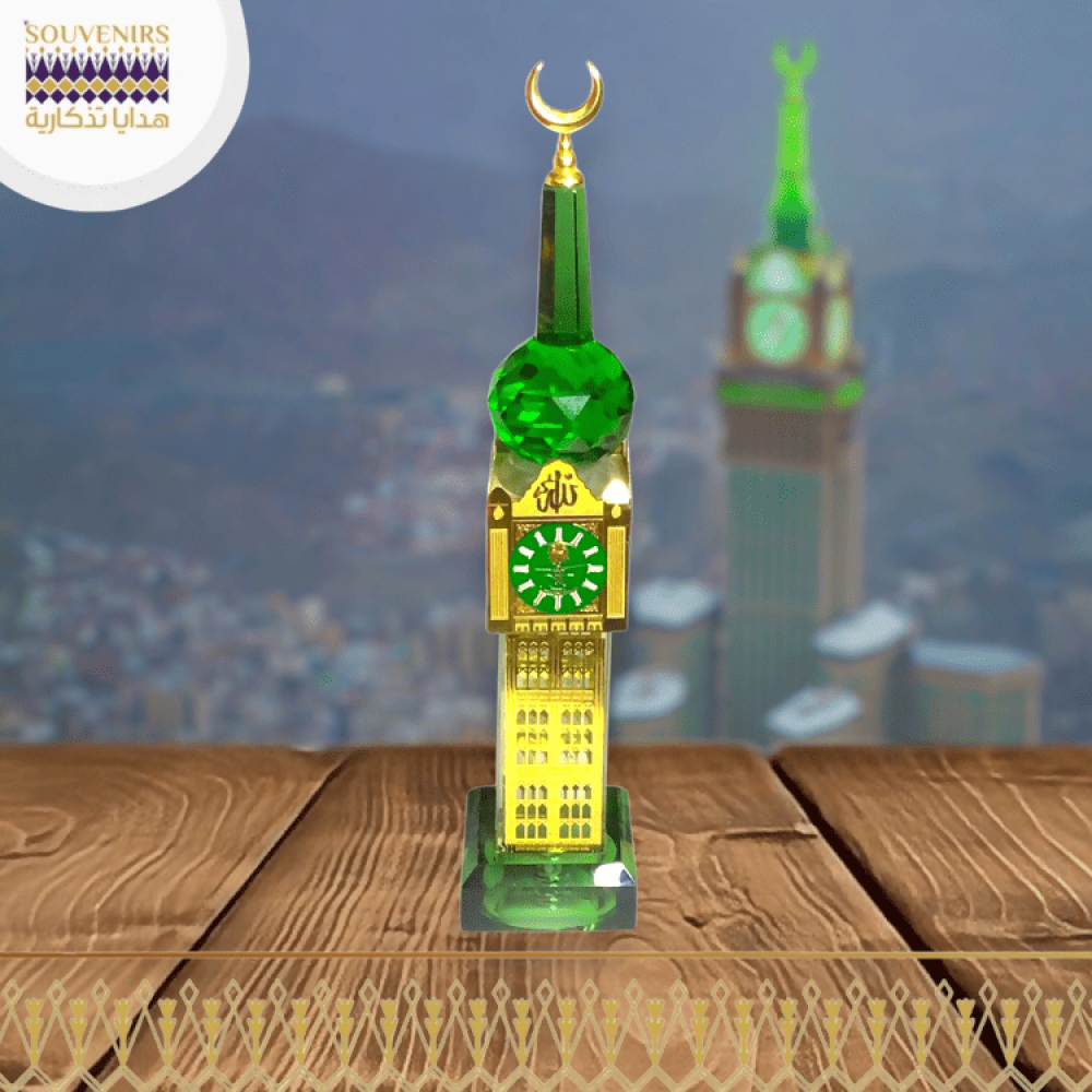 مجسم مستوحى من برج الساعة في مكة المكرمة، مصنوع بدقة عالية ليعكس روعة هذا المعلم الإسلامي الشهير.