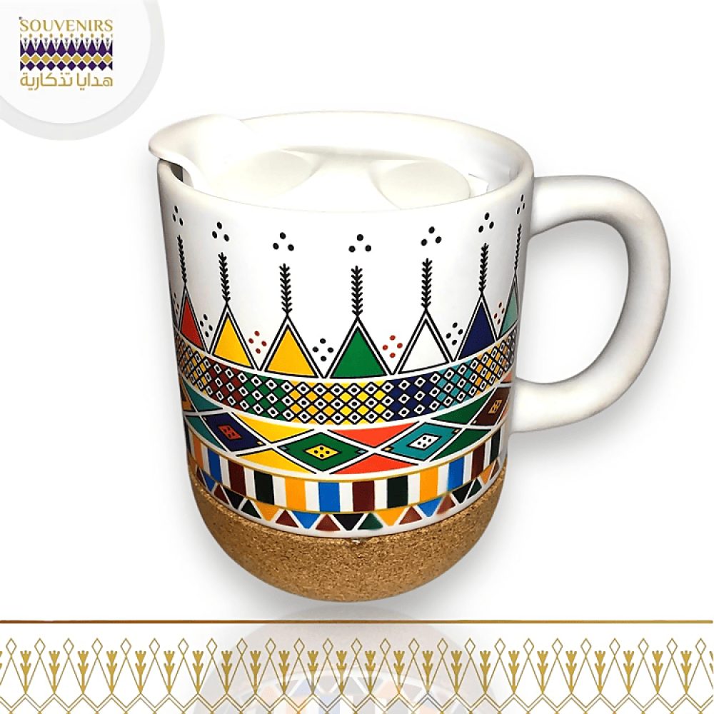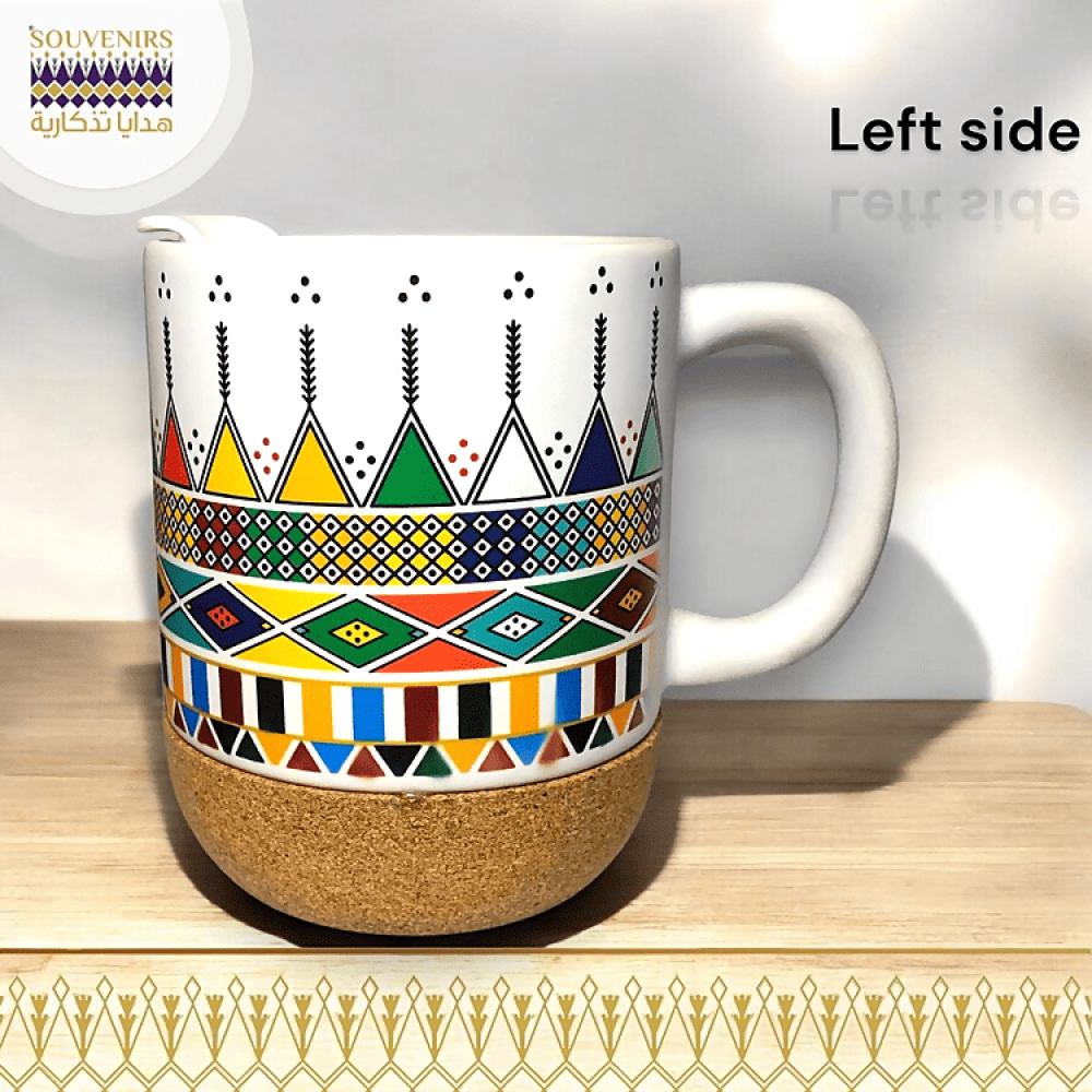 - كوب بنقش القط العسيري بقاعدة من هدايا تذكارية – لمسة من التراث