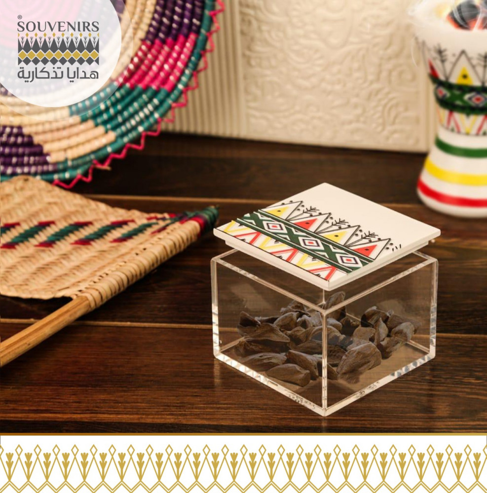 علبة من الاكريليك الشفاف مصممة مع غطاء مصمم بأناقة وجمال القط العسيري