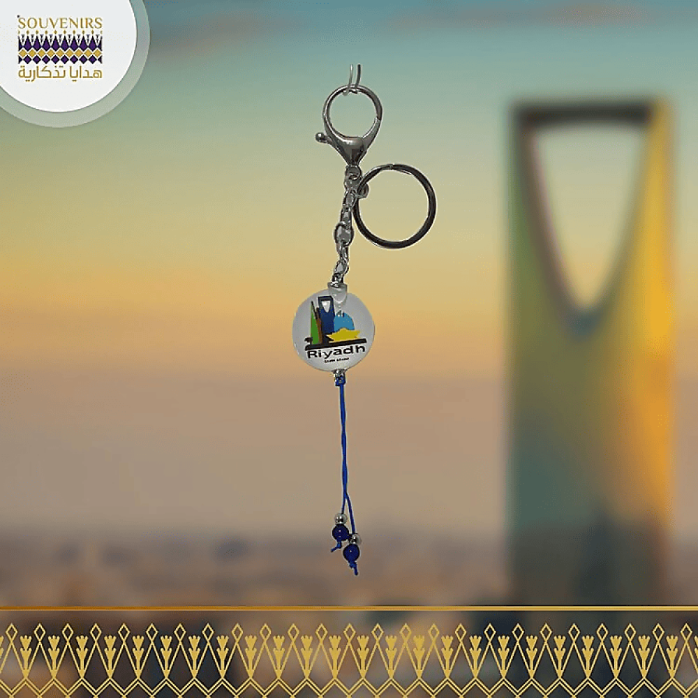 ميدالية من هدايا تذكارية تحمل ابرز معالم الرياض عاصمة المملكة العربية السعودية .