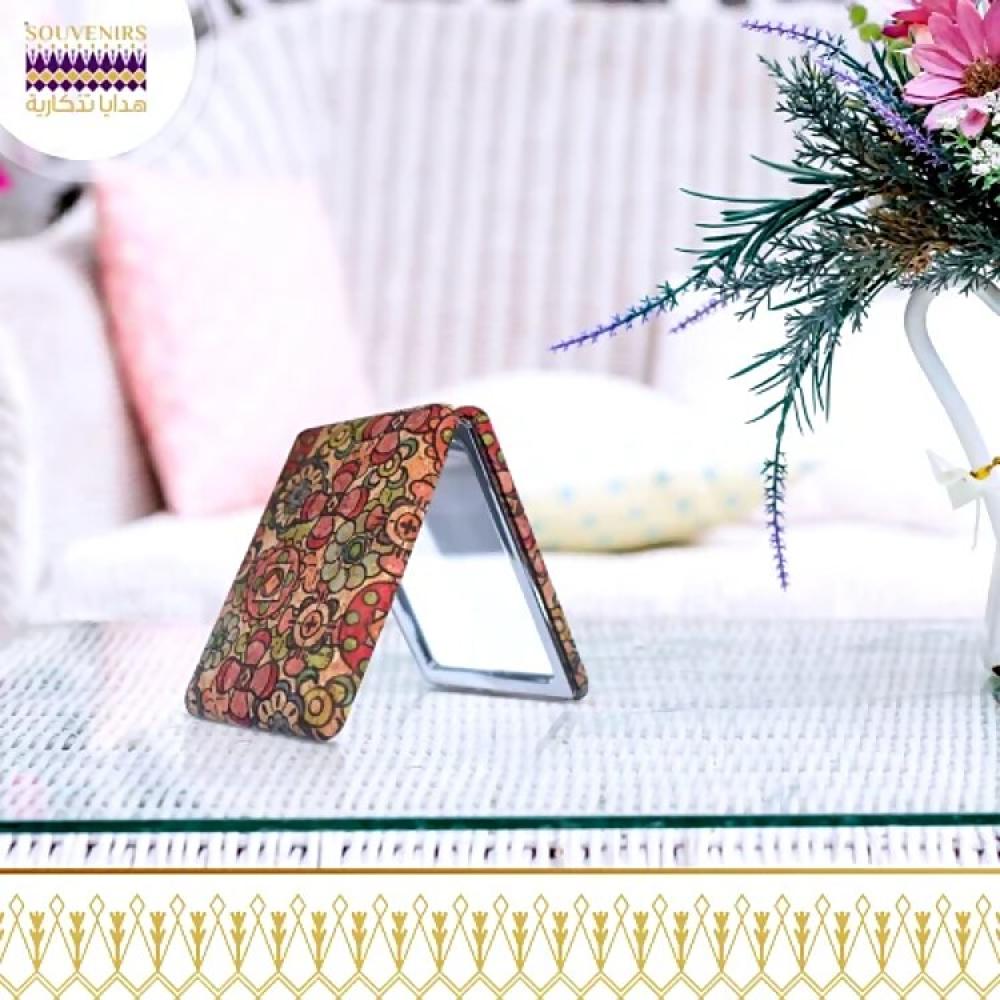 مرآة صغيرة مربعة الشكل مزينة بنقش زهور من هدايا تذكارية .