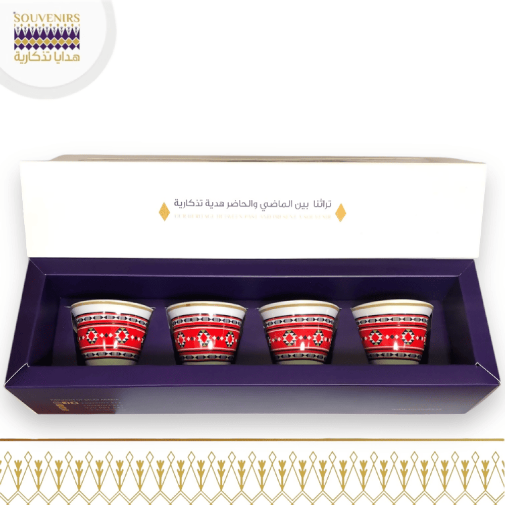طقم 4 فناجيل قهوة سعودي - نقش السدو