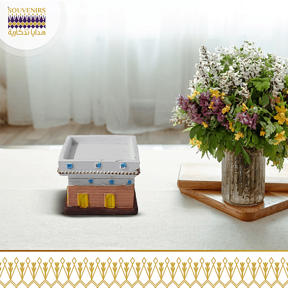بتصميم مستوحاه من فن البيوت التراثية الذي يجسد جمالها وأصالتها ، حيث انها تحتوي على غطاء علوي للحفاظ على البخور والعود .