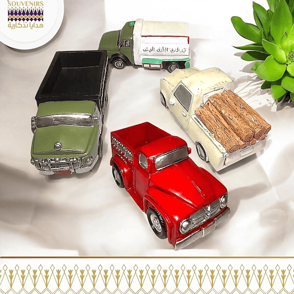 تحف مجسمات شاحنات كلاسيكية من هدايا تذكارية بألوان وتصاميم متنوعة.