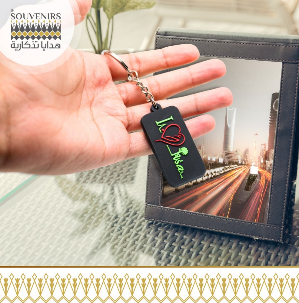 It bears the inscription I love Saudi Arabia (in English) with a metal keychain
