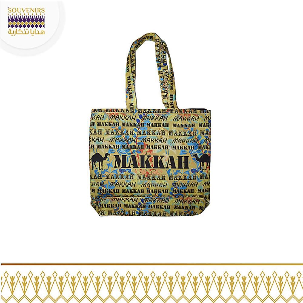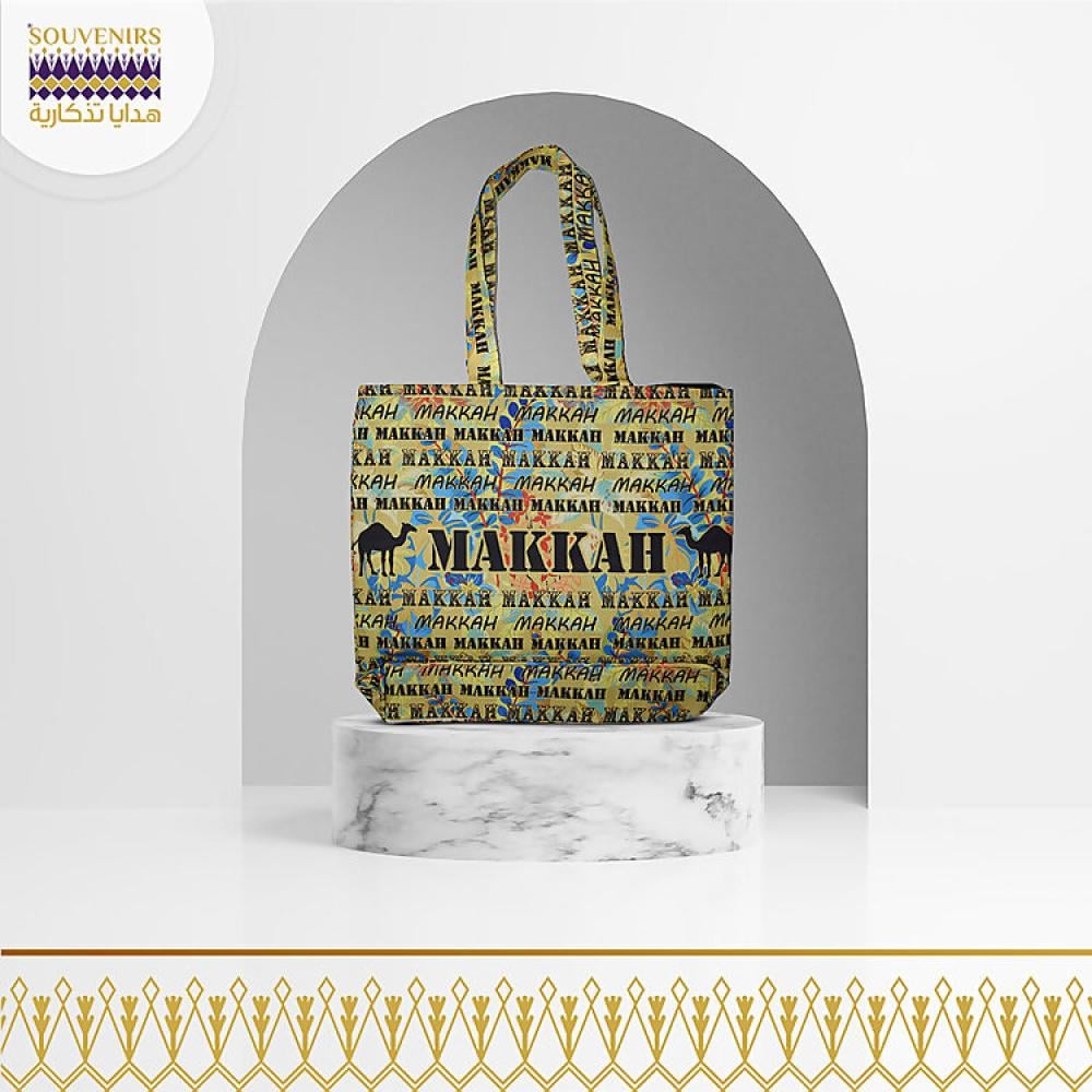 The bag is decorated with the word “MAKKAH”, with elegant graphics that include camels and desert nature, making it a souvenir of the most beautiful memories in Mecca.