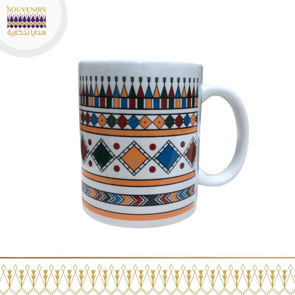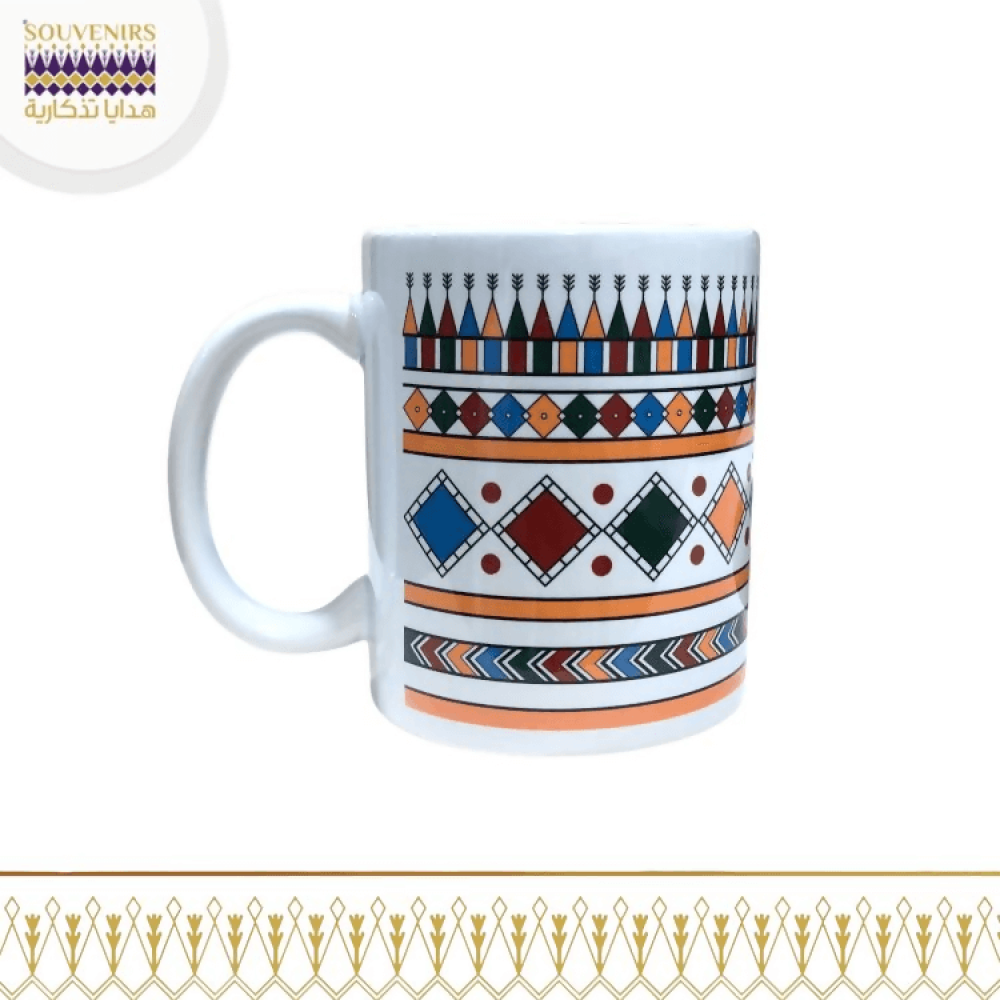 كوب سيراميك بنقش القط العسيري من هدايا تذكارية – لمسة من التراث العسيري في كل رشفة